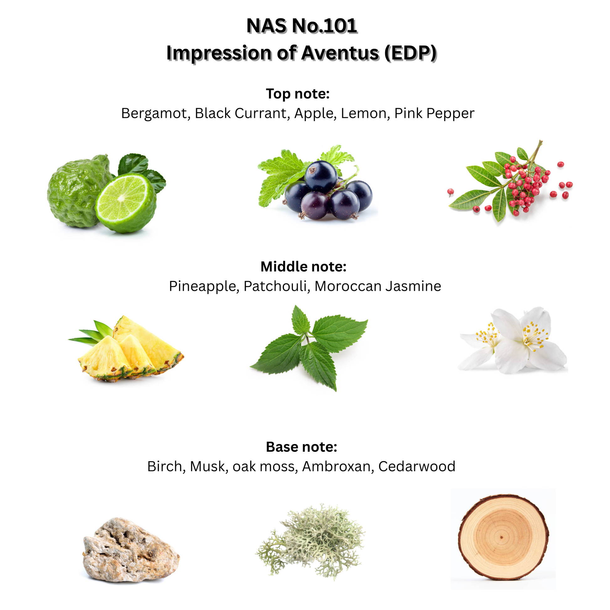 Nas No.101 Impression of Aventus for men. It is a sensual, audacious, and sophisticated scent.